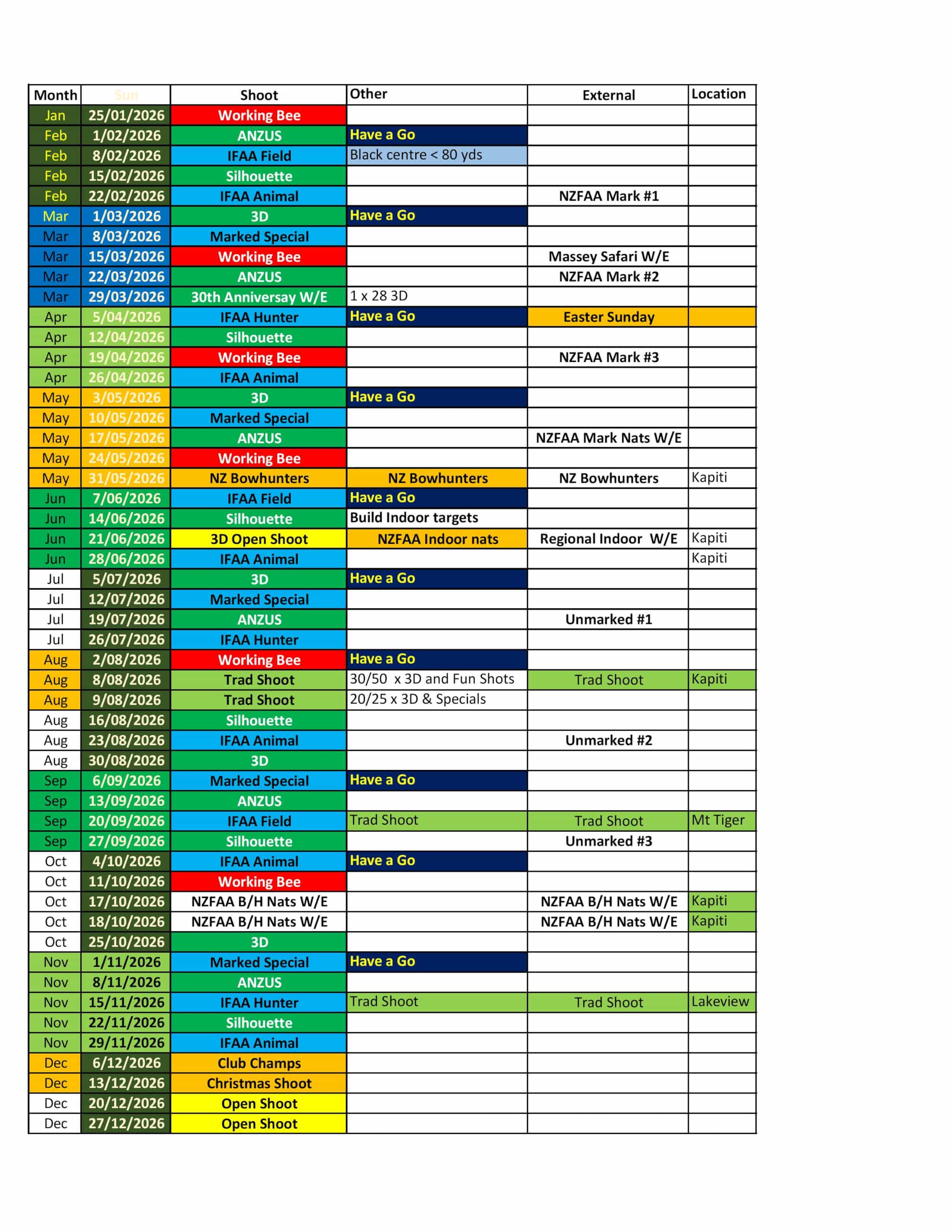WAA Events Calendar | NZFAA Calendar